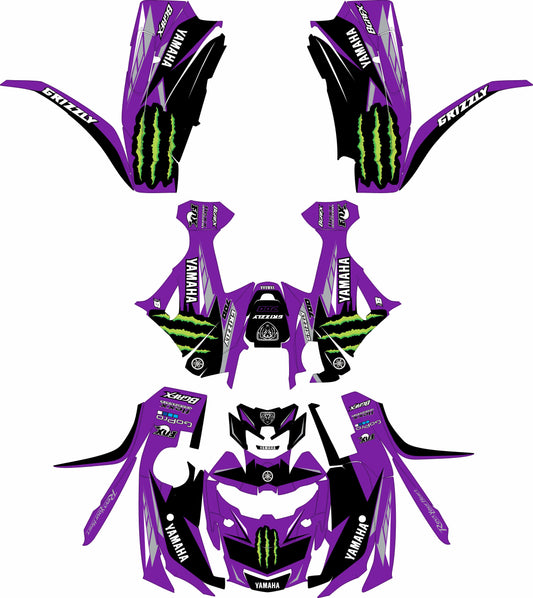YAMAHA GRIZZLY 660 700 FULL GRAPHICS KIT ''FACT PURPLE'' DESIGN