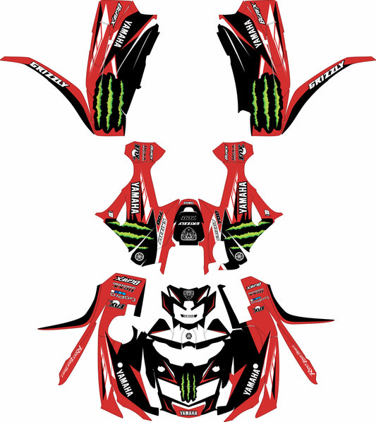 YAMAHA GRIZZLY 660 700 FULL GRAPHICS KIT ''ATOM RED'' DESIGN
