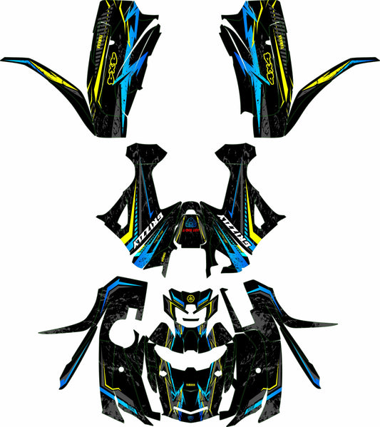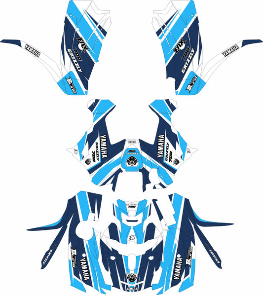 YAMAHA GRIZZLY 660 700 FULL GRAPHICS KIT ''ATOM BLUE'' DESIGN