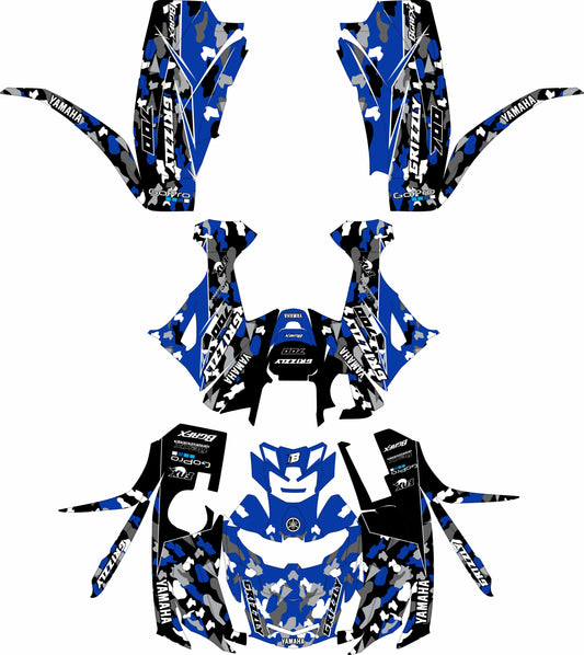 YAMAHA GRIZZLY 660 700 FULL GRAPHICS KIT ''CAMO BLUE'' DESIGN