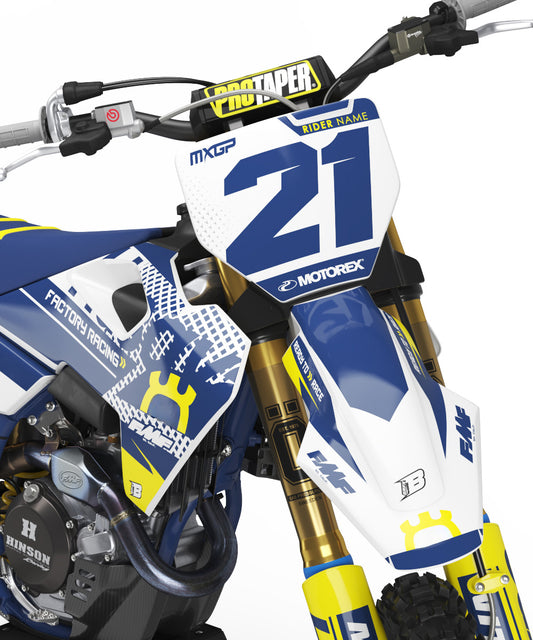 FULL GRAPHICS KIT FOR HUSQVARNA ''DEFENDER BLUE'' DESIGN
