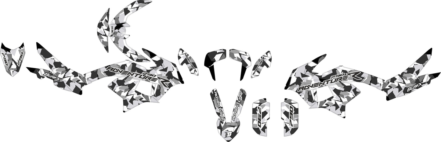FULL GRAPHICS KIT FOR KTM ADVENTURE 790-890 2018-2022 ''CAMO GREY'' DESIGN