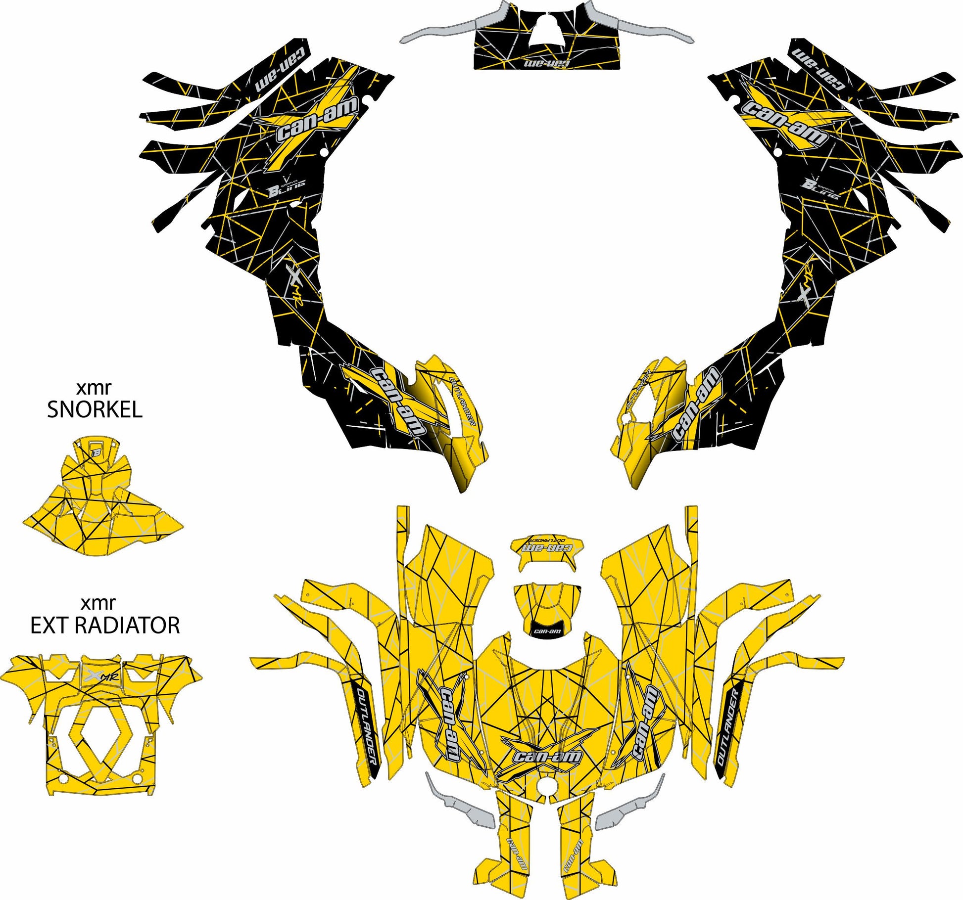 CAN-AM OUTLANDER G2 FULL GRAPHICS KIT "LINED YELLOW" DESIGN