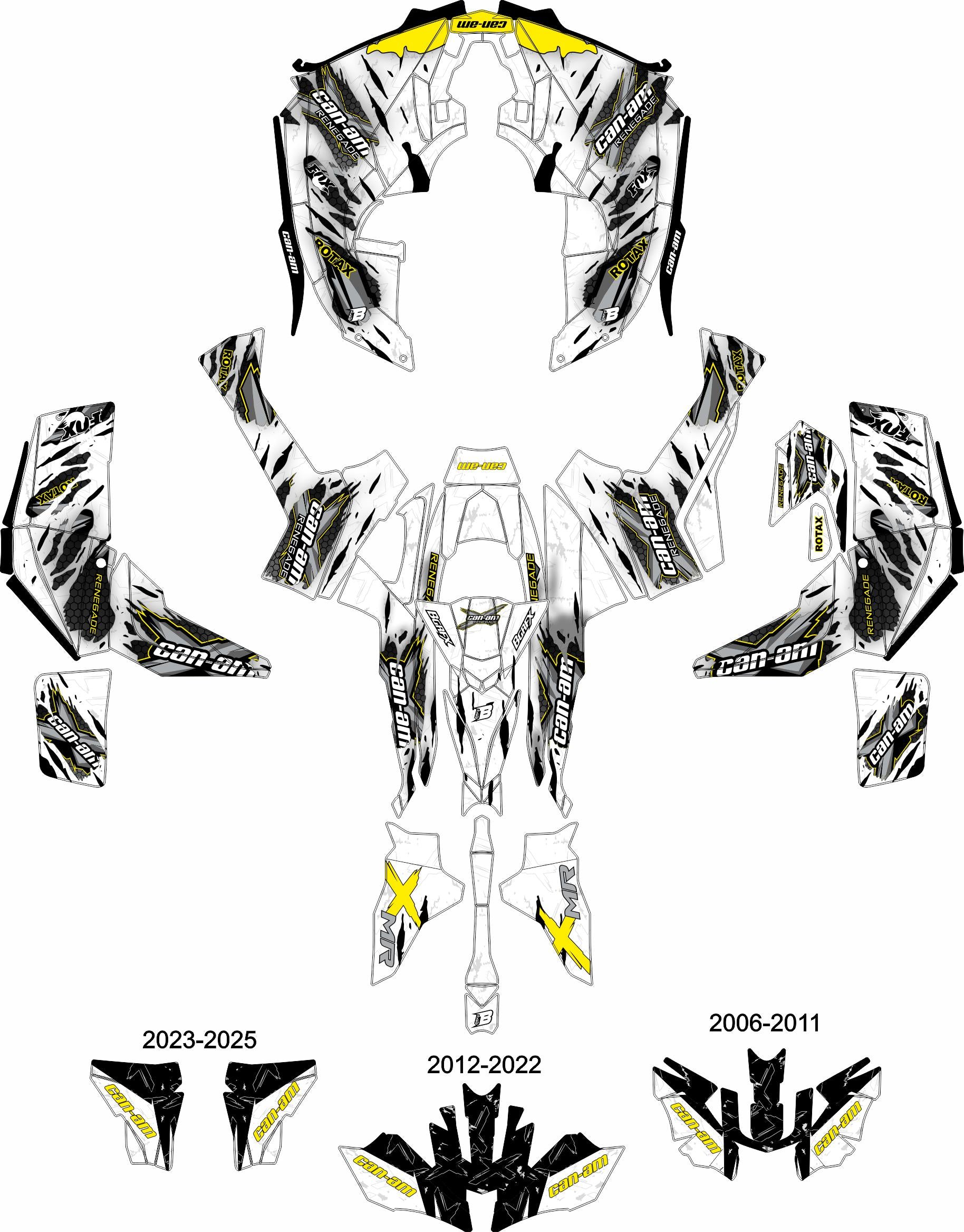 CAN-AM RENEGADE G1 G2 FULL GRAPHICS KIT "RAW WHITE" DESIGN