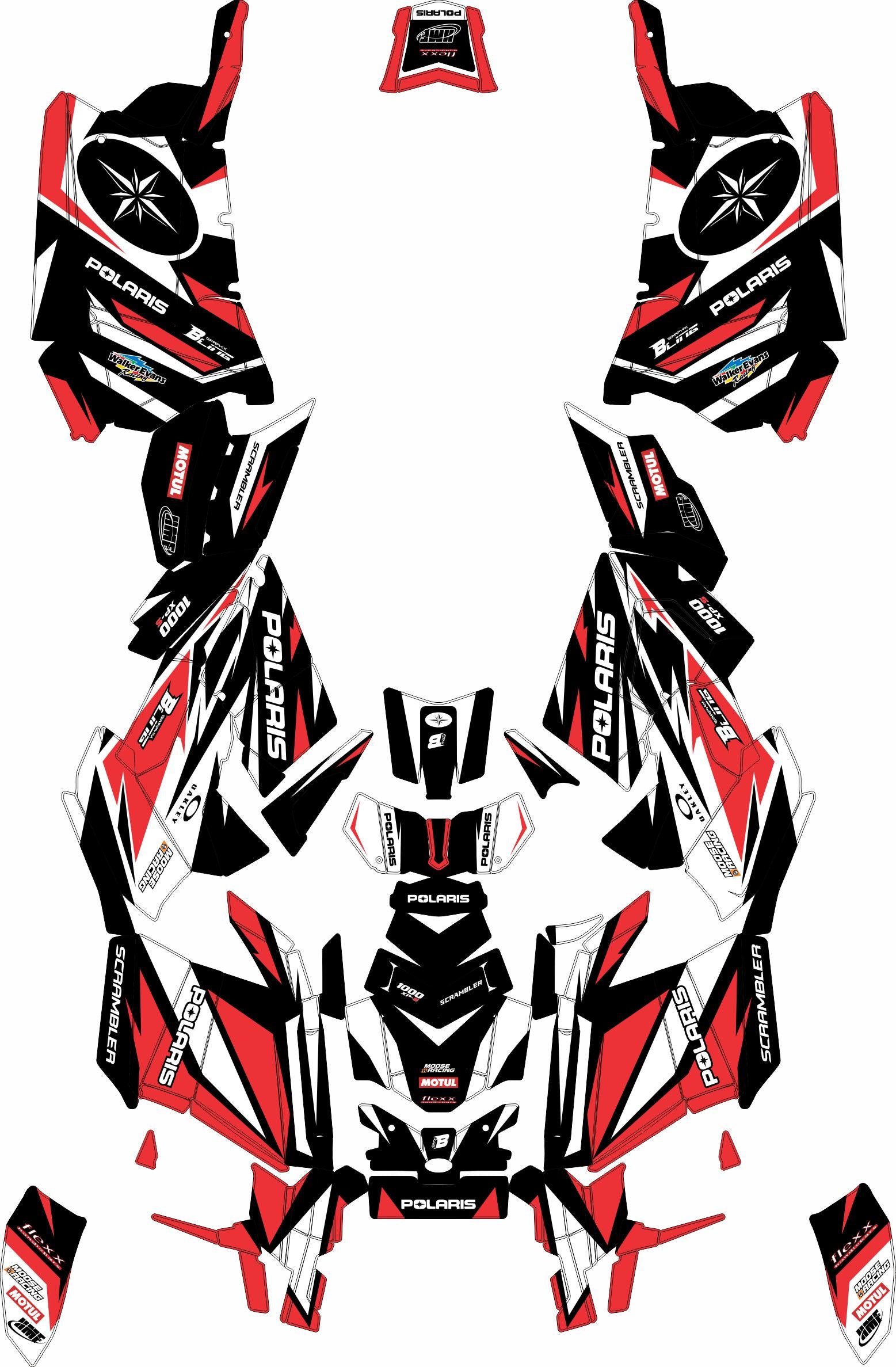 POLARIS SCRAMBLER XP 850-1000 FULL GRAPHICS KIT "RACING RED" DESIGN