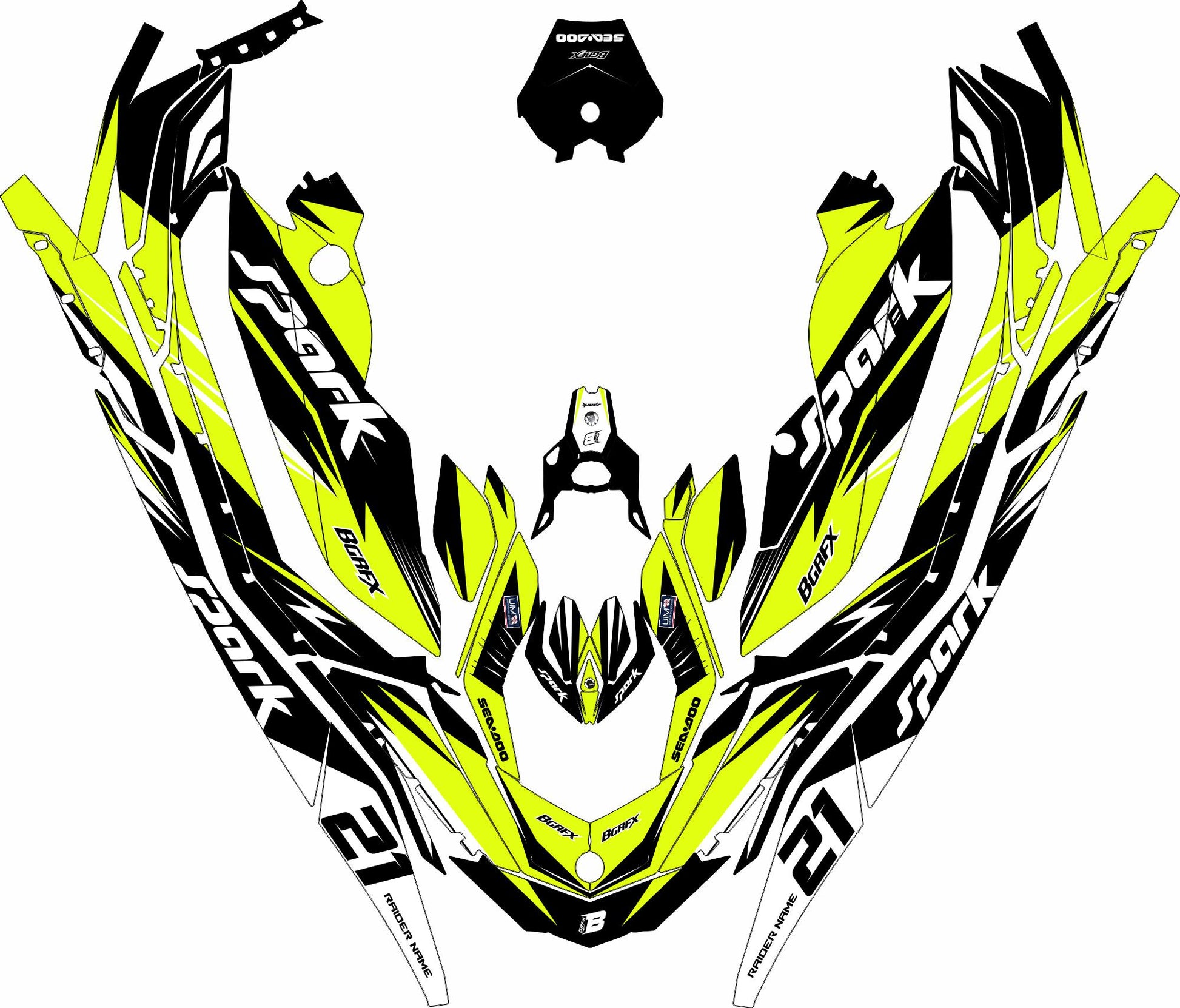 SEA-DOO SPARK 2014-2023 FULL GRAPHICS KIT "ATTACK FLUO" DESIGN