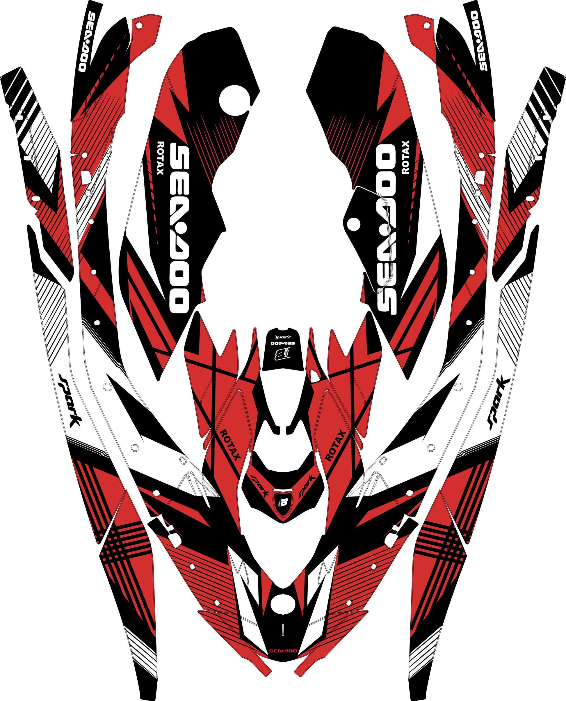 SEA-DOO SPARK TRIXX 2024 FULL GRAPHICS KIT "LINED RED" DESIGN