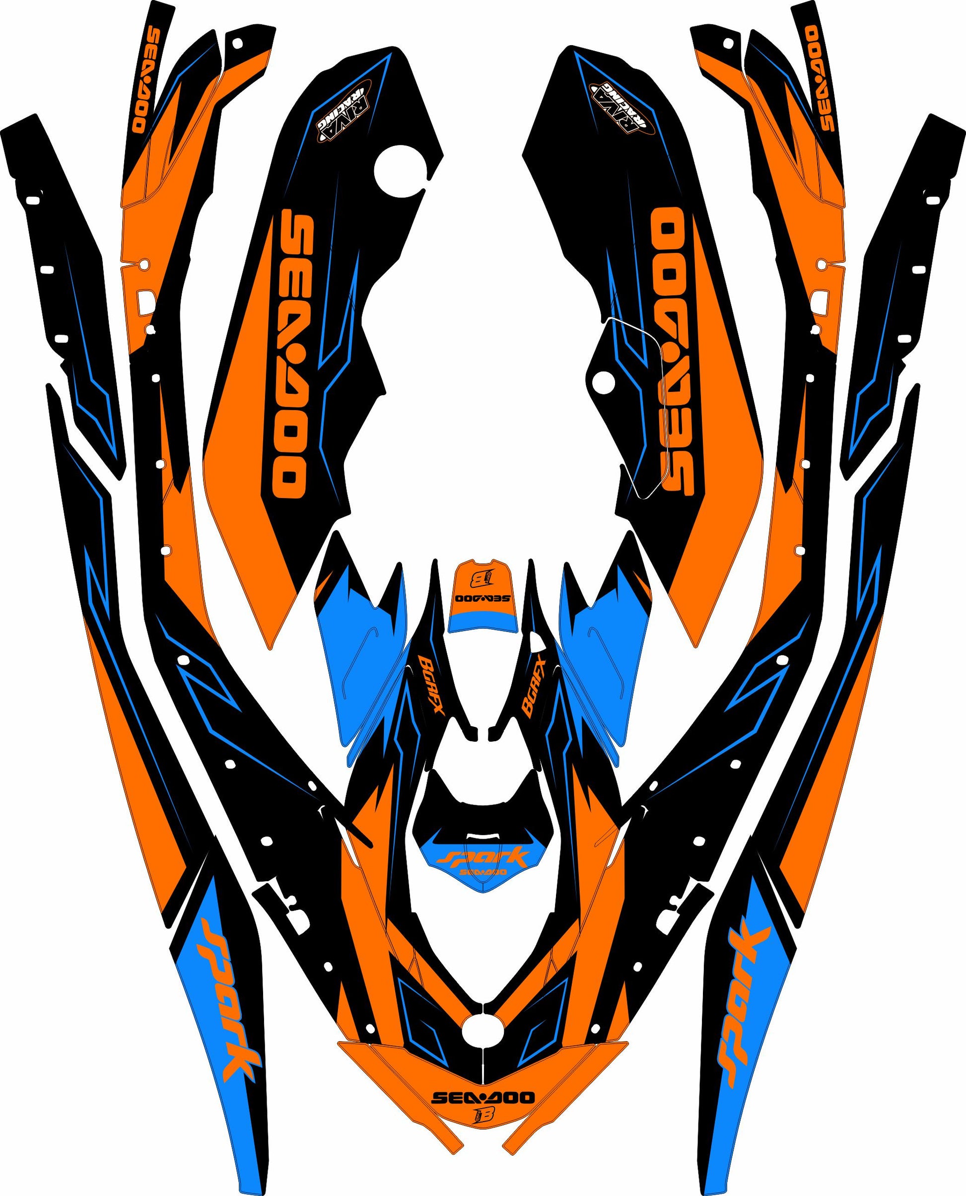 SEA-DOO SPARK TRIXX 2024 FULL GRAPHICS KIT "TUNED ORANGE" DESIGN
