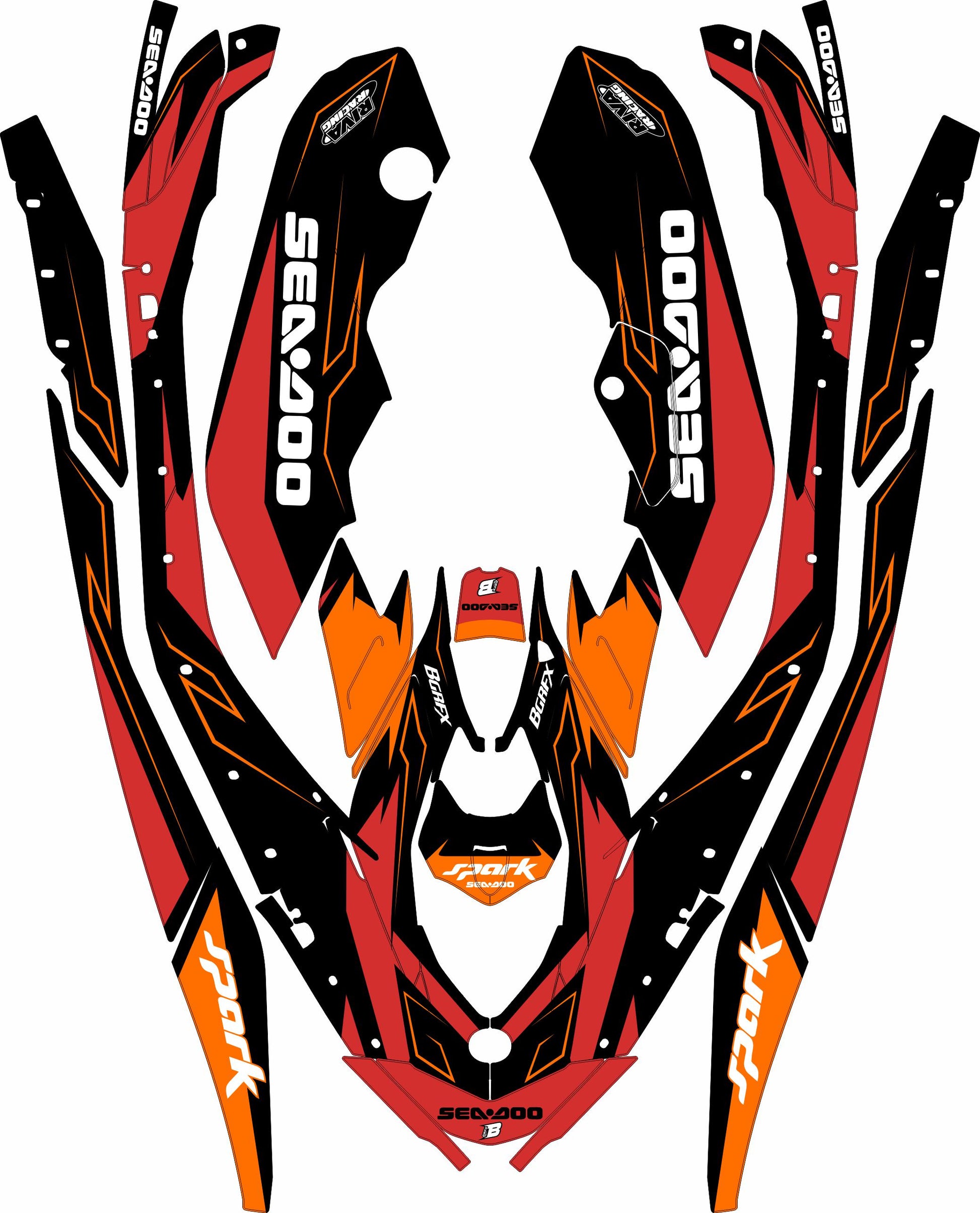 SEA-DOO SPARK TRIXX 2024 FULL GRAPHICS KIT "TUNED RED" DESIGN